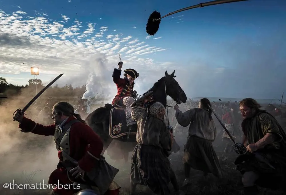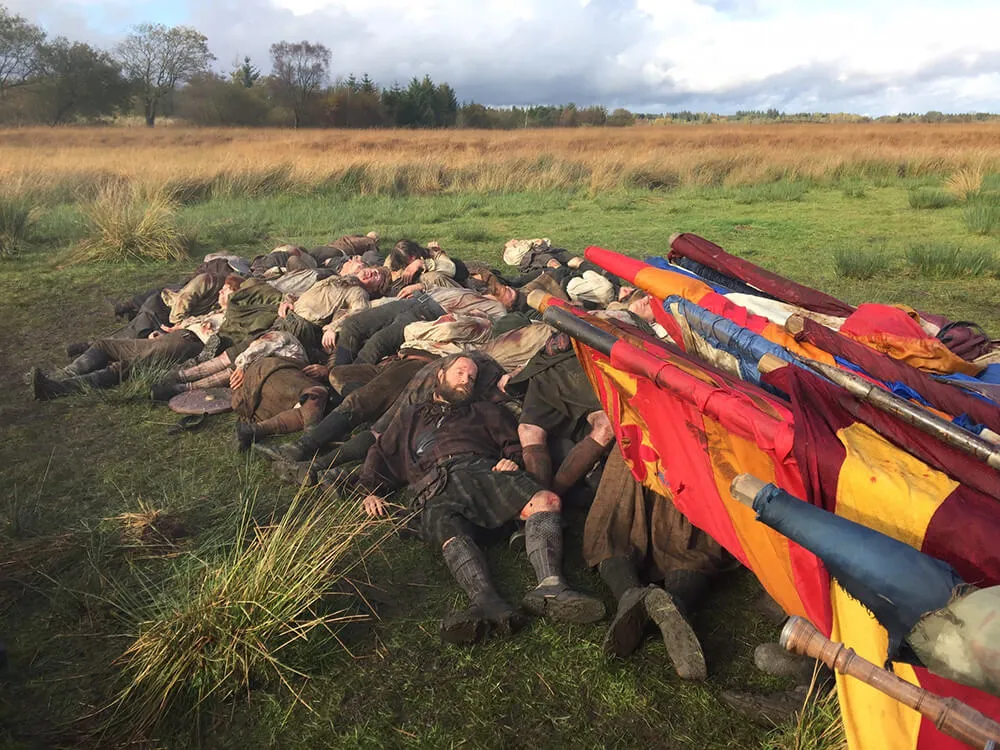 « Après avoir réalisé le décor de Culloden d’Outlander de manière si convaincante pour la saison 1, j’ai reçu un appel du National Trust for Scotland après sa diffusion pour vérifier que nous n’avions pas tourné sur le vrai site de Culloden sans autorisation. Culloden de la saison 3 a été filmé sur le bord de la même lande que celle que nous avons utilisée dans la saison 1, dans un champ d’environ 7 acres, alors que le vrai champ de bataille est d’environ 80 acres ». -Hugh Gourlay, Responsable de la supervision des lieux de tournage.