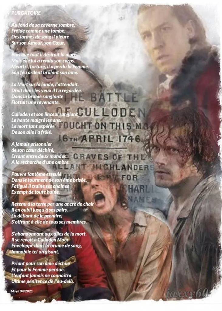 La performance de Sam est magnifique, couché dans le froid et parmi les morts, on revit la battaille à travers ses souvenirs. Massacre inutile et effronté porté par un Charles Stuart qui méritait de mourir dans la bataille. On a enfin, la vengeance de Jamie dans toute sa puissance vers B.J.R. Cet image où ils se retrouvent seuls sur le champ de bataille est saisissante, le dernier combat pour la mort. Deux durs à cuire tous les deux, tout de même, une façon peut être de mettre en évidence le souhait de Jamie si longtemps réprimé. Et toujours ce regard de B.J.R tantôt de haine, tantôt d’admiration alors que Jamie s’affiche de son dégoût. Cette main ,encore une fois, sur son épaule, le dernier sursaut d’une vie qu’il sentait le quitter. Je dois t’avouer que j’ai pensé que Jamie aller mourir aussi, pas possible je sais, mais pendant tout l’épisode on te donne pas trop espoir consideration faite pour ses conditions phisiques et mentales. N’ayant encore lu aucun livre à ce moment là, quand j’ai vu Claire sur le champ de bataille, j’avais espéré qu’elle soit de retour. Image forte qui ne pouvait manquer dans l’esprit de Jamie. Dommage que la pierre d’ambre soit tombée par terre, mais l’histoire à ses droits. J’ai fort aimé Lord Melton, ce code qu’il s’impose en rigueur et qui est aussi partie acquise pour John Gray. Superbe façon de sauver Jamie pour que l’histoire continue. Nos adieux à Rupert, vaillant personnage orgueilleux de ses racines, ami sincère qui nous aura accompagné avec son houmour cocasse et enfin notre Claire qui vit l’enfer de son côté. Négligée dans sa tenue de maison car l’envie d’être n’y etait plus, l’acceptation d’une situation difficile à la quelle elle pensait pouvoir faire face mais qui se révèle un poids trop lourd. Moers de l’epoque malheureusement bien ancrés auquels elle se révolte comme on pourrait le faire aujourd’hui. Un Frank intentionné, patient qui souffre et une Claire aveuglée par la douleur qui ne se rend pas compte à quel point elle est dure avec lui. Je me suis dite qu’elle aurait pu faire un effort, elle avait accepté en fin de compte, mais sa rage d’avoir tout perdu l’aveglait. Petit clin d’oeil à la cuisson dans la cheminée bien trouvé, un moment de rappel apaisant pour Claire, je pense, entre autre. J’ai détesté la cuisine de cette maison, on pouvait pas faire plus moche, à l’époque il y avait mieux, et je n’ai pas aimé non plus sa voisine, pot de colle à éviter ! Sans parler de cet obstétricien qui aurait mérité d’être manchot plutôt que medecin ! Bien sûr des performances superbes, une très belle réalisation, des beaux dialogue qui etoffent l’épisode d’une grande fluidité. J’ai aimé, et un Sam fidèle à lui même, qui rempli l’ecran de ses seules expressions. Une suite qui se présente envoûtante et toujours ce plaisir de toutes raisons qui nous fait attendre l’episide suivant avec impatience. Merci Aurélie.
