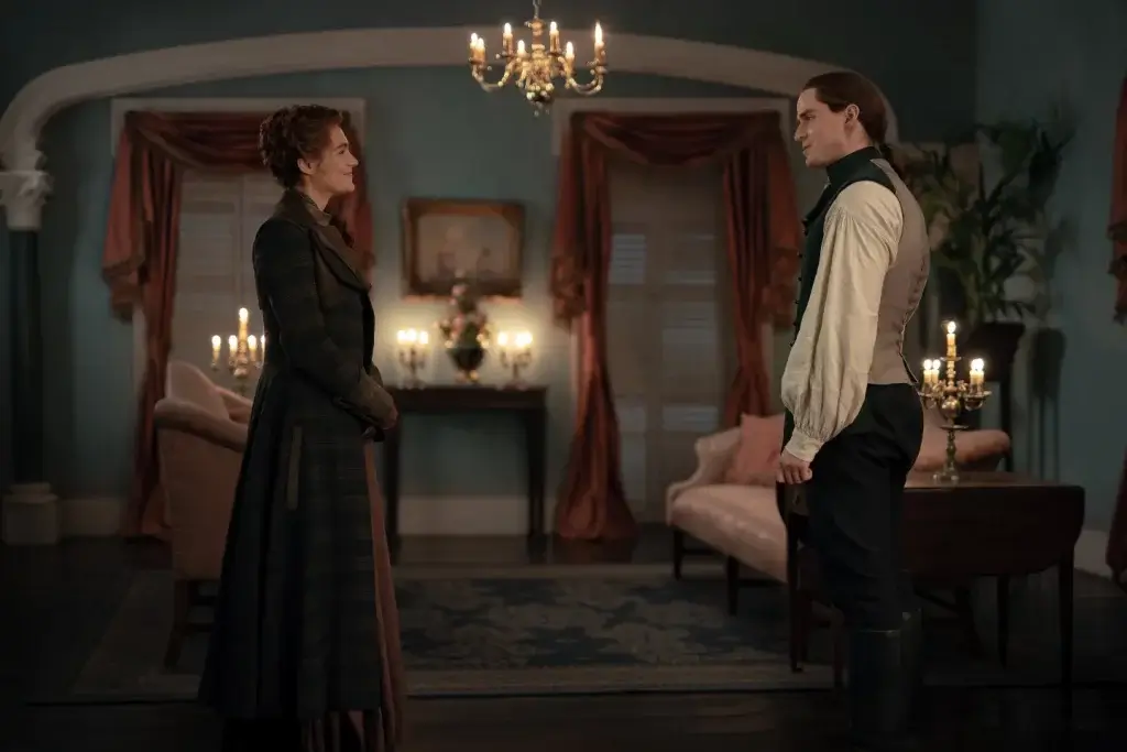 Visuellement, l’épisode est particulièrement soigné. Entre les scènes au Ridge, baignées d’une lumière douce mais parfois trompeuse, les intérieurs qui paraissent à la fois chaleureux et fragiles, et des costumes toujours aussi travaillés — notamment ceux de Brianna ou Claire — on reste dans un univers familier. Et pourtant, quelque chose a changé. L’atmosphère est plus instable, comme si cet équilibre que l’on connaissait commençait à se fissurer.